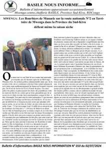 MWENGA : Les Bourbiers de Munzele sur la route nationale N°2 en Territoire de Mwenga dans la Province du Sud-Kivu défient même la saison sèche Auteur/autrice de la publication :CELLCOM BASILE Post published:02/07/2024 Post category:Actualités Post comments:0 commentaire Vous devriez également aimer ITOMBWE: Organisation de l’atelier de sensibilisation et vulgarisation de l’arrêté Ministériel organisant la Commission Consultative de Reglement des Conflits Coutumiers 19/04/2024 Bukavu : Organisation de l’atelier de renforcement des capacités des membres des Commissions Consultatives de Règlementdes Conflits Coutumiers « Les rideaux viennent de tomber » 12/04/2024 MWENGA: La Population de BASILE se prépare de commémorer 63 ans de renaissance et reconnaissance officielle de la Chefferie de BASILE en RDCongo 07/05/2023 Laisser un commentaire Annuler la réponseCommentEnter your name or username to comment Enter your email address to comment Enter your website URL (optional) Enregistrer mon nom, mon e-mail et mon site dans le navigateur pour mon prochain commentaire. Current ye@r * Leave this field empty Δ